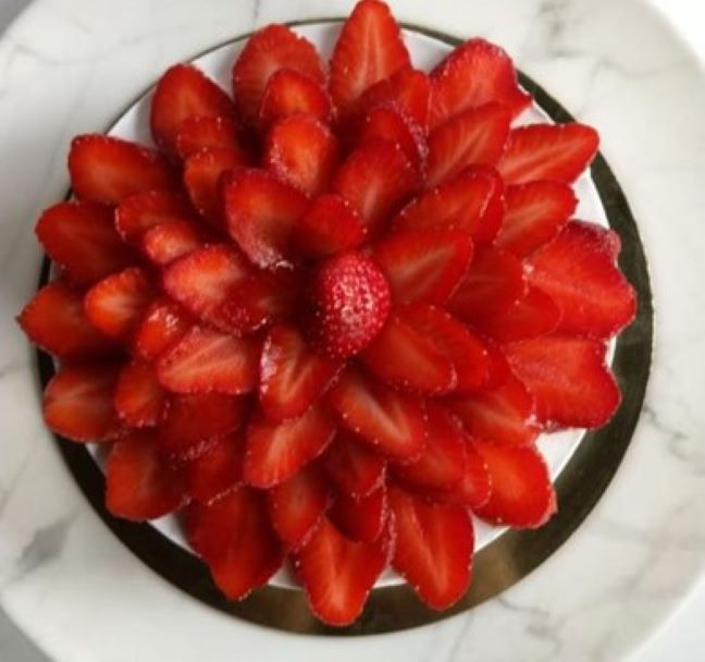 Vanilla Cake with layers of Chantilly cream and strawberries